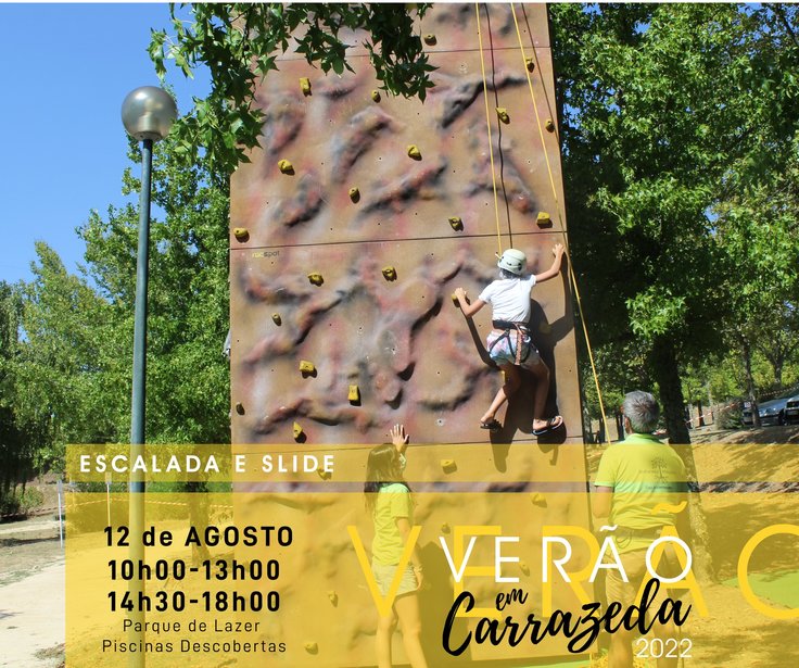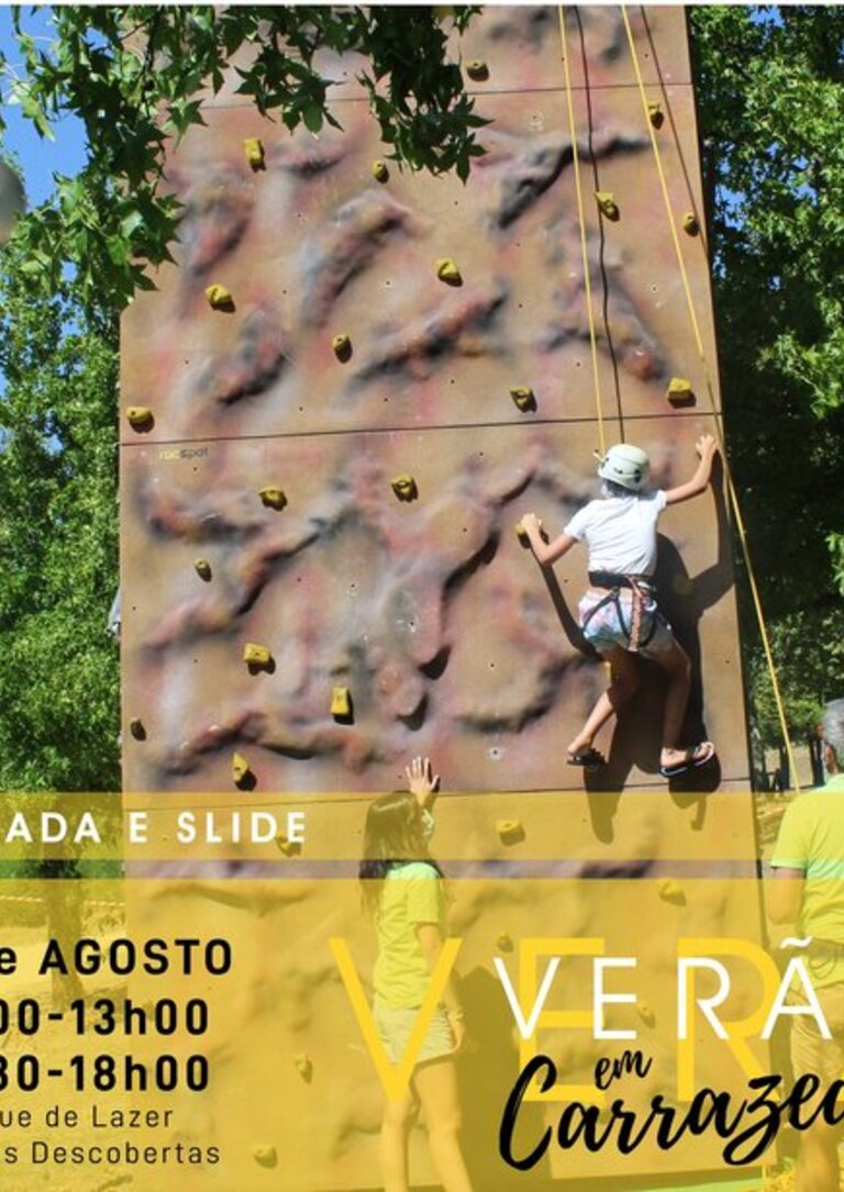 Inserido no evento Verão em Carrazeda a Zona de Lazer da Piscina Municipal Descoberta vai receber as atividades de Slide e Escalada a manhã e tarde do dia 12, Dia da Juventude.