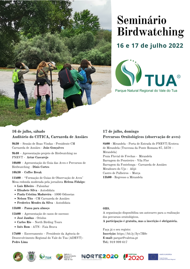 O Município de Carrazeda de Ansiães e o Parque Natural Regional do Vale do Tua (PNRVT) promovem um Seminário de Birdwatching, no fim de semana de 16 e 17 de julho.