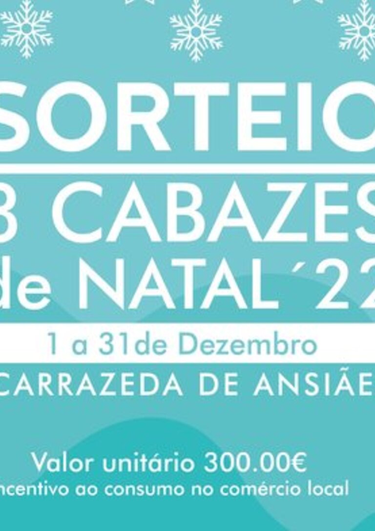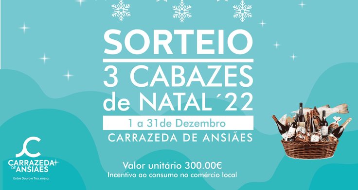 Como forma de incentivar o consumo no comércio local durante a quadra natalícia, o Município de Carrazeda de Ansiães traz de volta o sorteio de 3 Cabazes de Natal. A iniciativa destina-se a todos os consumidores que efetuem compras entre os dias 01 e 31 de dezembro nos estabelecimentos comerciais locais.